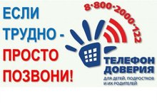 Бесплатную, анонимную, круглосуточную психологическую помощь вы можете получить, позвонив на Детский телефон доверия 8-800-2000-122, а также на сайтах: www.telefon-doveria.ru и портале для родителей «Я – родитель» www.ya-roditel.ru.