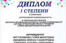 Педагоги нашего детского сада получили диплом 1 степени, в VII Региональном конкурсе авторских и методических разработок, пособий, развивающих игр для педагогов образовательных учреждений "Новые идеи для особенных детей" /
