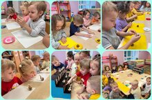 Безнең балалар бакчасының кечкенәләр төркемендә, балалар табигый материал белән кызыксынып эшлиләр. Табигый материал белән эшләү баланы күзәтүчәнлеккә күнектерә, фикерләүне, күрү һәм төсләрне кабул итүне үстерә. Иҗади хыял формалаштыра.