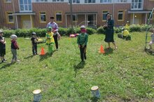 Также Нептун провел подвижные игры «Море волнуется», где дети изображали красивые морские фигуры; «Принеси царю водицы», где дети в ведерках носили царю воду; игра «Нептун и ладошки», где дети должны были успеть спрятать свои ладошки, чтобы Нептун не дотронулся трезубцем; игра «Ловись рыбка».