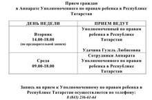 Изменения в расписании приема граждан в Аппарате Уполномоченного по правам ребенка в РТ / Татарстан Республикасының бала хокуклары буенча вәкаләтле вәкил аппаратының гражданнар кабул итуе расписаниясе 05.07.2019