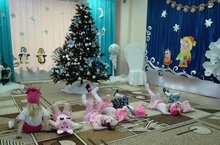 Подготовка началась задолго до наступления праздников. Воспитатели с детьми разучивали стихотворения, проводили беседы на тему Нового года, новогодних традиций, музыкальный руководитель разучивал с воспитанниками песни, танцы, новогодние хороводы. Огромную работу провели по оформлению групп и музыкального зала. В музыкальном зале — зимний пейзаж: белые сугробы, елки, дома. В центре зала – сверкает нарядная ёлка.