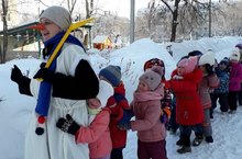 В гости к ребятам пришел настоящий Снеговик. Дети водили хороводы, катались на санках, состязались в ловкости. Все участники зарядились положительной энергией, здоровьем и оптимизмом на весь год.