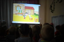 Тышта яңгыр ява, көн дә салкын, дип бер дә күңелсезләнеп утырмыйбыз. Тәрбияче апаларыбыз Богряшова Т.М., Русакова И.В. белән бергә татарча мультфильмнар карыйбыз. Тукай әкиятләре геройлары безне тәртипле, тырыш, эшчән булырга өйрәтә. Акбай белән күңелле!