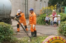 Детям все интересно. Машина, с "хоботом, как у слона", откачивала воду из колодца.