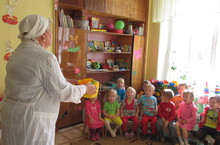Здоровье дороже богатства... под таким девизом прошли уроки здоровья во всех группах детского сада. Медицинская сестра из городской поликлиники Евгения Михайловна Плеханова, играя с детьми, напомнила о необходимости соблюдения культурно - гигиенических навыков, о том, какие продукты полезнее, о пользе овощей и фруктов, а также поощрила детей в их желании каждый день делать зарядку. А с детьми старшей и подготовительной групп был проведен урок- занятие на тему " Здоровые дети - здоровая семья". Ребята рассказывали, какими видами спорта занимаются их родители, а мальчики подготовительной группы отжимались от пола не менее 20 раз !