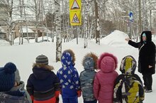 Воспитанники подготовительной группы МБДОУ №20 "Сказка" закрепляют знания о ПДД, полученные в группе.