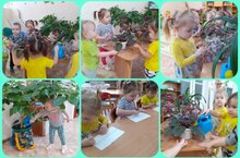Кечкенәләр төркеме балалары йорт үсемлекләре белән таныштылар. Балалар үз белемнәрен рәсемнәрдә ныгыттылар. -