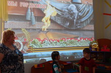 Это не просто слова, это наш девиз ребят средней группы «Лучики» (воспитатель Оленина С.А.).. Беседы о той жестокой войне, сюжетно-ролевые игры «Мы солдаты», дидактические игры «Военная техника», подвижные игры «Эстафета защитников» - помогают детям познать все тяготы того времени. Светлана Александровна демонстрировала ребятам мультфильм, в котором освящаются все события ВОВ.