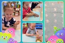 Ребята ясельной группы №7 «Колокольчик» познакомились с северным белым медведем, и техникой нестандартного рисования.