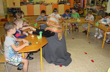 В группе №2 мама Набиуллиной Амины провела мастер класс по пришиванию пуговицы на волшебный кармашек. Дети самостоятельно вдевали нитку с иголкой, делали отметку на кармашке, пришивали пуговицу. Ребята узнали , что бывают различные иголки (для портного, медицинские, сапожные), как появилась иголка, чем шил первобытный человек. Занятие получилось увлекательное и интересное .