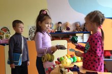 В нашем саду дети подготовительной группы успешно и с интересом играют в сюжетно- ролевую игру «магазин» на татарском языке.. Во время игры дети развивают способности быть в роли продавца и покупателя. На протяжении всей игры они учатся и закрепляют вежливые слова на татарском языке как: “исәнмесез, хәерле көн, хәлләр ничек?, рәхмәт, сау бул”. Также дети закрепляют счет до 10, расцветку 4 цветов, указывают размер той или иной игрушки, продукта, посуды и т.п. Детям очень нравится играть в такие игры в группе, на прогулке и даже дома, заинтересовав своих родителей и близких.