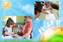 Дети закрепляли знания основных цветов: красный, синий, жёлтый, зелёный.