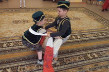 В начале июня, во всех городах и селах нашей Республики проходит веселый праздник - "Сабантуй" ( "Праздник плуга"), символизирующий окончание посевных работ. Наш детский сад "Родничок" тоже не остался в стороне. Погода не позволила провести праздник на территории детского сада, но он замечательно прошел в музыкальном зале. В нарядно украшенный зал собрались дети средних,старших и подготовительных групп, звучали веселые татарские мелодии, у всех было праздничное настроение.Ведущие поздравили всех с праздником и пригласили всех собравшихся, активно участвовать в народных играх и конкурсах. Дети, одетые в татарские народные костюмы, внесли в зал традиционный атрибут Сабантуя - ярко украшенный шест. .И праздник начался! Детям очень понравилось учствовть во всех играх, но особенно весело и оживленно зрители поддерживали учстников таких игр, как "Бег в мешках", "Борьба подушками","Разбей горшок","Перетягивание каната","Перенеси яйцо в ложке","Борьба на поясах".И как водится на "Сабантуе", все победители получил изаслуженные призы.