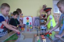 В нашем детском саду уделяется особое внимание изучению правил дорожного движения. Дети знакомятся со знаками, регулирующими дорожное движение, разметкой проезжей части и пешеходных переходов, правилами поведения на остановках, в транспорте, вблизи дорог, во дворе, по дороге в детский сад и т.д.. Затем дети закрепляют свои знания на макете улицы, в подвижных , дидактических и сюжетно -ролевых играх.