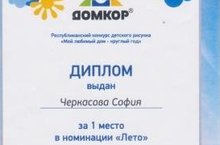 Воспитанница нашего детского сада Черкасова Софья заняля первое место в конкурсе "Наш любимый дом-круглый год" в номинации "Лето". Молодец!