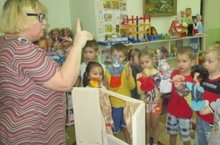 В детском саду № 25 "Родничок" в старшей группе № 7 "Улыбка", во второй половине дня, организован кружок "От слова к слогу ", руководитель - Позигуновой Галина Владимировна. На занятиях кружка дети осваивают управление движением куклы правой или левой рукой на три пальца в установочные гнезда для движения рук и головы куклы в ручном театре. Дети готовятся показать сказку для малышей, где они станут настоящими артистами кукольного театра и для них будут звучать громкие аплодисменты.