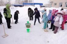 Построенные ледяные горки на всех участках детского сада пользуются большим спросом среди детей.