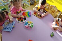 Дети 2 группы "Утята" учиться развивать эту способность через игру "Шнуровка",деревянными конструкторами и разными крупами.
