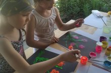 Ребята группы N6 "Капельки" очень любят рисовать. Сейчас, жарким, солнечным летом, представляется хорошая возможность рисовать на прогулке. Во время рисования у детей развивается память, мышление, речь, внимание, мелкая моторика, навыки успешного взаимодействия со сверстниками, ну и, конечно же, хорошее настроение.