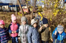 Көз-яфрак вакыты. 8-нче номерлы өлкән төркем балалары бик теләп яфракларны җыештыралар.