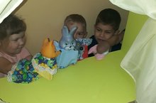 Мәктәпкәчә тәрбия бирүдә иң популяр һәм мавыктыргыч юнәлеш-театральләштерелгән эшчәнлек. 10 нчы төркем балалары да бүген "Заюшкина избушка" әкияте буенча театр күрсәтергә карар кылдылар"