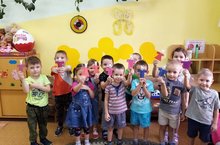 В детском саду прошла профсоюзная ёлка для детей сотрудников детского сада. Ребята вместе с Дед Морозом и сказочными героями водили хороводы, танцевали и играли в интересные игры.