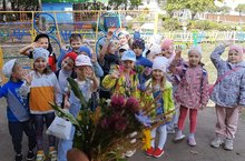 Дети нашего детский сад поздравили бывшую заведующую Тамару Михайловну с днем дошкольного работника и днем пожилого человека. Ей вручили букет цветов, подарок и поблагодарили за многолетний добросовестный труд.