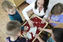 Сегодня в 1 младшей группе 3"Петушок " прошёл день под девизом" Игры с песком, как песочная терапия". Дети с интересом знакомятся со свойством песка. В процессе развиваются творческие способности. Такие игры приносят детям радость познания, снимают психоэмоциональное напряжение, развивают тактульные ощущения. Так, простая детская игра с песком - важный фактор оздоровления и развития дошкольников.