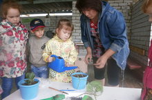 Дети должны знать названия двух-трех растений, называть их части: цветок, лист. Знать основные растительные группы: дерево, трава. Уметь рассказывать о растениях, отмечая характерные признаки цветков (один или несколько, их цвет, запах), листьев (большие или маленькие, широкие или узкие, их окраску). Находить одинаковые растения. Знать, что за растениями надо ухаживать - поливать, протирать листья. С этой целью мы сегодня тоже ухаживали за комнатными растениями, где дети старательно трудились, и это занятие им очень понравилось.