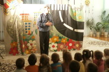 Сегодня в детском саду прошло театрализованное представление по обучению детей ПДД и профилактике ДДТТ. Театр «Семь морей» показал воспитанникам ДОУ на примере сказочных героев, что может случиться беда, если дети не будут соблюдать правила дорожного движения.