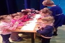 Дети подготовительной к школе группы №13 показывали кукольный спектакль для детей второй младшей группы. Старшими воспитанниками была представлена сказка «Весёлая история». Сказку сочинили дети вместе с воспитателями группы. Маленьким зрителям очень понравилась сказка. Благодарные зрители вручили актерам в награду искренние аплодисменты.