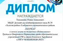 Безнең балалар бакчасының 11 баласы «Чемпионнар лигасы-2022» Россия Федерациясе мәгариф учреждениеләре һәм якын чит илләр арасында өченче ачык беренчелектә катнашты. Тимошенко Роман "тарту"дисциплинасы буенча лауреат булды.
