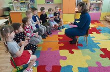 В нашем детском саду успешно реализуется проект «По секрету всему свету», который направлен на изучение родного языка в непринужденной дружеской обстановке, для создания которой в кабинете расставлены мягкие пуфы и модули, на которых можно удобно расположиться и даже прилечь. Педагог также находится на этих пуфах вместе с детьми, тем самым располагая к себе еще больше. Это необходимо для того, чтобы каждый воспитанник смог почувствовать себя раскованно и уверенно вступать в коммуникацию, живо обсуждать любые темы по УМК. В такой обстановке ни одному ребенку не удается отмолчаться, он активно отвечает на вопросы в процессе беседы, участвует во всевозможных игровых ситуациях и дискуссиях.