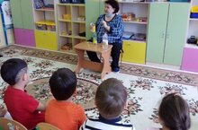 С этой целью дети подготовительной группы № 13 вместе с воспитателем показали детям младшей группы спектакль по мотивам сказки «Теремок», используя для этой цели театр, в котором заняты перчаточные и конусные куклы.