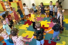 Хороводные игры всегда сопровождаются словами или песнями, то есть детским фольклором, который стимулирует творческие проявления ребёнка, будит фантазию.Используя детский фольклор, через движения мы знакомим детей с народными обычаями, традициями, используем народные игры, потешки, приговорки.