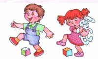 1. И. п.: ноги на ширине ступни, кубики в обеих руках внизу. Вынести кубики вперед, стукнуть ими друг о друга, опустить вниз (5 — 6 раз).