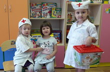 Особое место в деятельности дошкольника занимают игры, которые создаются самими детьми - это сюжетно-ролевые игры. Играя в сюжетно-ролевую игру, вживаясь в какой-то образ, ребенок воспроизводит свои впечатления, переосмысливает и раскрывает их. Поэтому задача воспитателя побуждать детей к ведению разных ролевых диалогов. В игре с воспитателем наши воспитанники младшего дошкольного возраста с удовольствием попробовали себя в роли врачей. Ребята примерили на себя медицинский халат, провели осмотр пациентов. Мәктәпкәчә яшьтәге балалар эшчәнлегендә балалар үзләре тарафыннан оештырыла торган уеннар аерым урын алып тора-бу сюжетлы-рольле уеннар. Сюжетлы-рольле уен уйнаганда, нинди дә булса образга кереп, бала үз тәэсирләрен кабатлый, яңадан фикерли һәм аларны ача. Шуңа күрә тәрбияченең бурычы балаларны төрле рольле диалоглар алып барырга өндәү. Тәрбияче белән уенда безнең мәктәпкәчә яшьтәге балалар бик теләп үзләрен табиб ролендә сынап карадылар. Балалар медицина халатын киеп алып, пациентларны карап чыктылар.