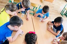 Җәйге чорда балалар белән татар теле буенча өстәмә уен итеп, 4 төркемдә «Мияу үзенә дуслар эзли» дигән темага кызыклы әңгәмә үткәрелде. Балалар «Мияуга» дусларын табып бирделәр, җырлы-биюле уеннар уйнадылар. Татар теленә кагылышлы сүзләрне, җөмләләрне кабатладылар. Әңгәмә балаларга биктә ошады.