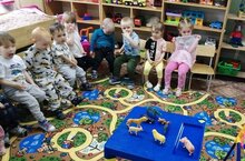 Сегодня, дети ясельной группы, побывали в деревне, в гостях у бабушки с дедушкой, где познакомились с домашними животными. Дети с удовольствием играли в игры: "Кто так", "Чей малыш", "Чей домик". А затем, раскрашивали кошечек, которых подарили детям бабушка и дедушка.