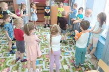 Бүген 3 нче номерлы "Теремкәй"балалар бакчасының иң кечкенә балалар төркемендә шөгылендә балалар бергәләшеп күнегүләр эшләргә өйрәнделәр.Ә соңынан яраткан хәрәкәтле уен "Аюда кунакта"ны уйнадылар.Балалар шөгылләрен бик яраталар. -