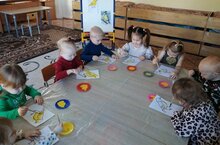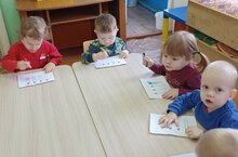 На занятии по рисованию дети раскрасили птичек-синичек. Перед занятием с детьми провели пальчиковую гимнастику "Птички". Поиграли в подвижную игру "Покорми птенчиков".