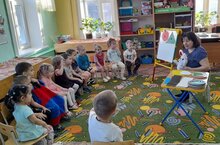 Бүген 3 нче номерлы "Теремкәй" балалар бакчасының иң кечкенә балалар төркемендә, физкультура шөгелендә туп белән күнегүләр эшләргә өйрәндек. Кечкенә балалар тупны тотырга, иптәшенә тәгәрәтеп җибәрергә өйрәнделәр. Балаларга туп белән күнегүләр үтәргә бик ошады. -