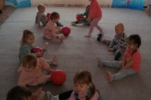 Сегодня в ясельной группе прошло занятие с мячом. Дети учились катать мяч друг другу. Развивали координацию движения.