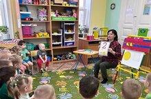 В детском саду номер 3 "Теремок" дети 2 младшей группы в свободное от занятий время с удовольствием приходят в татарский кабинет послушать сказку, поиграть. Вот и сегодня воспитатель по обучению татарскому языку Гадельшиной Ф. Х. рассказала детям сказку А. Алиша "Маленький зайчонок ", а потом поиграли вместе с зайчонком в татарскую народную игру "Красивый мячик" Вот так весело и с пользой проводят время в детском саду наши малыши.