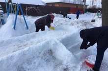 Ял көннәрендә әти әниләр бакчага килеп,тәрбиячеләргә боздан балалар өчен тау һәм бүтән төрле әйберләр төзергә булыштылар.