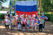 Бу бәйрәмне тәрбиячеләр балалар белән саф һавада,мәйданчыкта оештырдылар.Балалар өчен "Мин Россиядә яшим"исемле уен программасы узды.Тәрбияче апалары белән бергә балалар әйлән бәйлән уйнадылар,табышмакларга җаваплар таптылар, Россия гимнын җырладылар. -