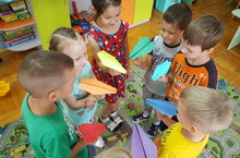 Сегодня дети были заняты очень важным делом. В «творческой мастерской» они конструировали цветные самолётики из бумаги, проявив свои умения, навыки, фантазию и творческие способности. Бүген балалар бик мөһим эш белән мәшгуль иде: "иҗади остаханә" дә алар кәгазьдән төсле самолетлар ясадылар,үз осталыкларын, фантазияләрен һәм иҗади сәләтләрен күрсәттеләр.