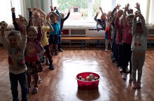 Сегодня утром к ребятам первой старшей группы в гости пришел Колобок. Из его корзинки выставлялись пучки засушенных трав. «Что это такое?» - спросили ребята. «Я катился по полям, лугам, дорогам. Собрал много лекарственных растений, а как они называются, не знаю. Помогите мне!»- попросил Колобок.Бүген иртән беренче өлкән төркем балалары янына кунакка кабартма килде. Аның кәрҗиненә коры үлән бәйләмнәре куелган. «Нәрсә ул?"- дип сорады балалар. «Мин басуларда, болыннарда, юлларда йөрдем. Күп дару үләннәре җыйдым, ә алар ничек атала, белмим. Ярдәм итегез миңа!» - дип сорады кабартма.