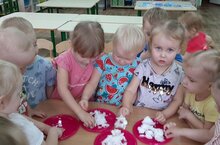 1 нче төркем балалары белән кичке вакытта эшсез утырмыйлар, "Тылсымлы куллар" түгәрәгендә үз куллары белән "Көз бүләкләре-яшелчә" дигән кул эшләре ясыйлар. Балаларның эстетик дөньясы, балаларда иҗат үсеше үсә. Алар төрле формадагы кәгазьләрдән әзерләнгән әзерләүләрне кистеләр. Материалдан сак файдаланырга өйрәндек. Балалар барысын да пөхтә итеп кисәргә тырыштылар, бу усидчивость ярдәм итә, шулай ук башланган эшне ахырына кадәр җиткерергә омтылалар.